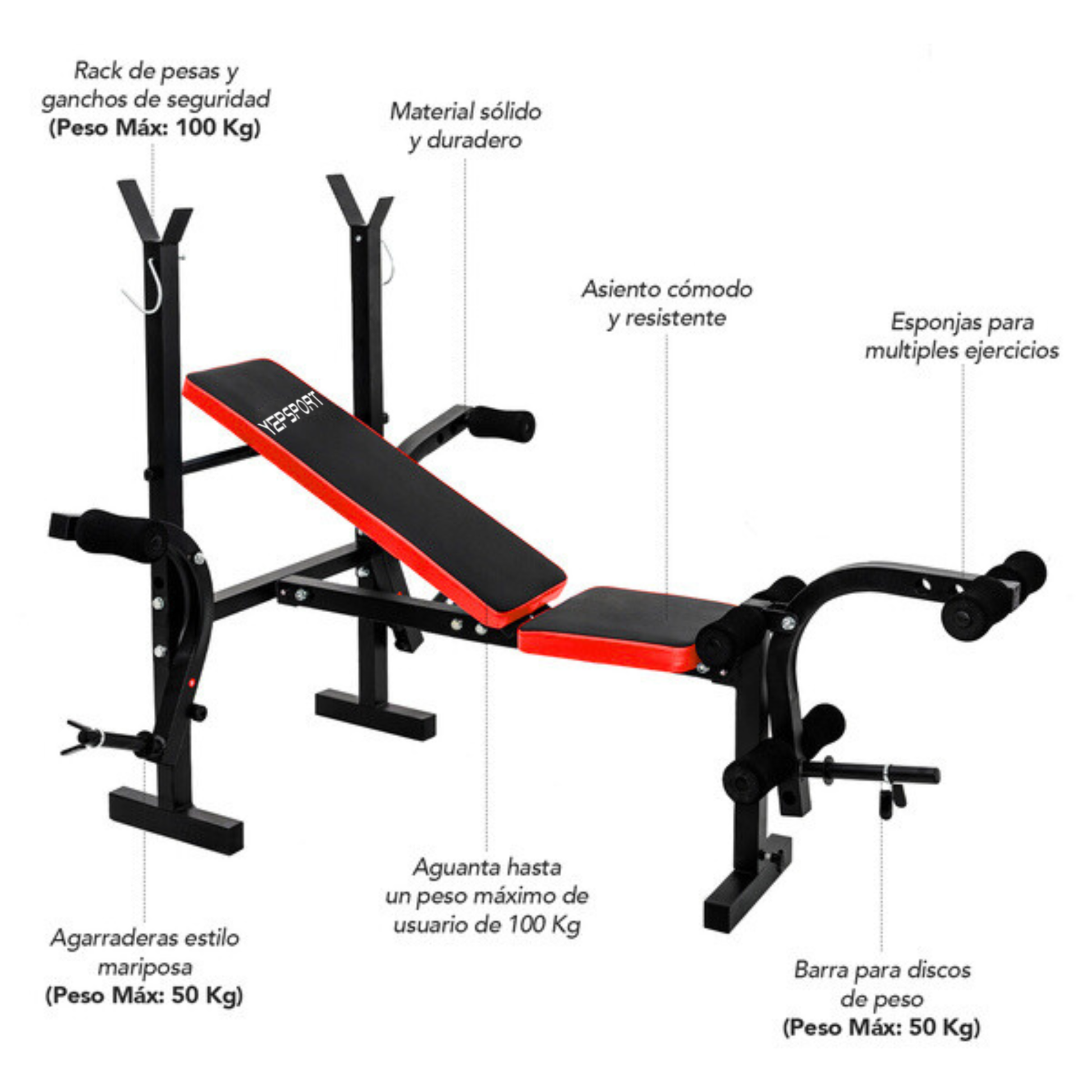 Banca Multifuncional Pesas Pecho Piernas Abs
