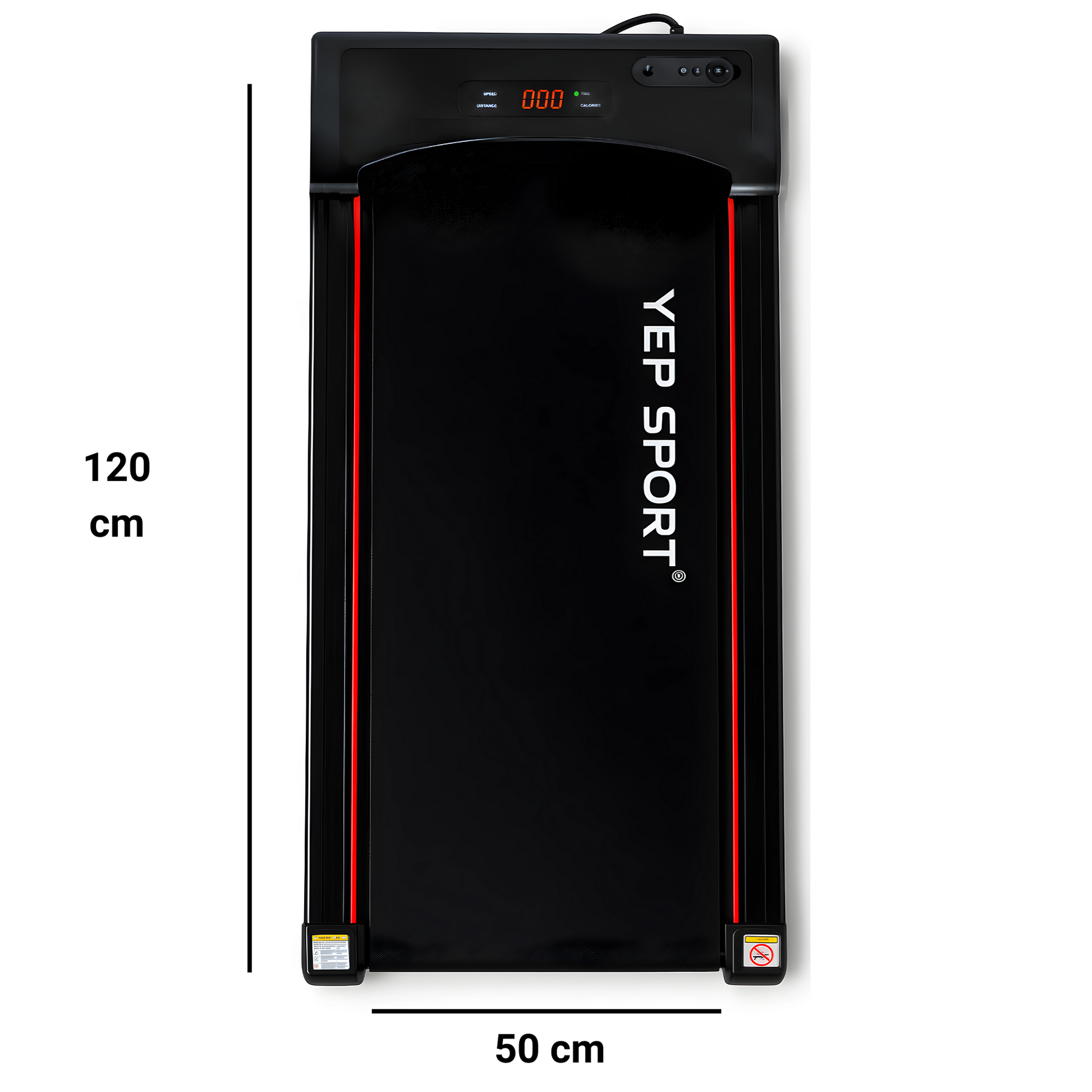 La trotadora 1051 de YEP SPORT es óptima en espacio ocupado dentro del hogar, colócala bajo la cama. Dimensiones compactas de Alto: 12 cm, Ancho: 50 cm, Largo: 110 cm y un peso de18 kg.
